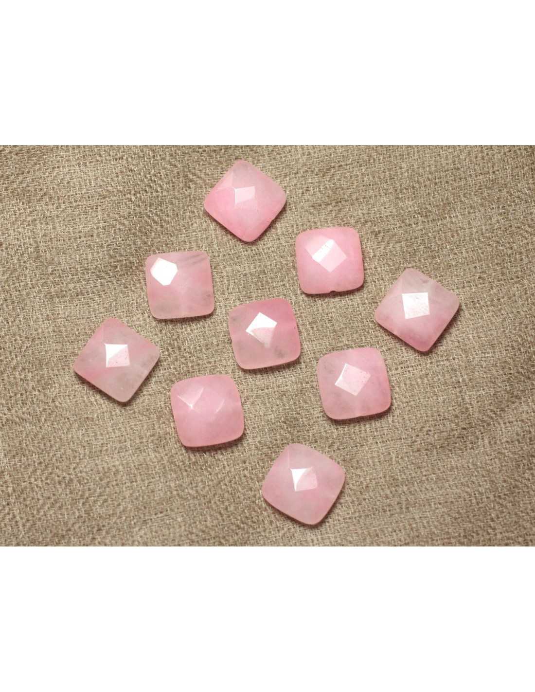 Thread 39cm - Pink Jade Stone Beads Faceted Squares 14mm Natural semi-precious stone tinted Color Light pink, transparent Shape Faceted Squares Dimensions Length 14mm x Width 14mm x Thickness 6mm approximately Drilling dimension 1mm approximately Sold by strand of 39cm Approximately 27 beads per strand