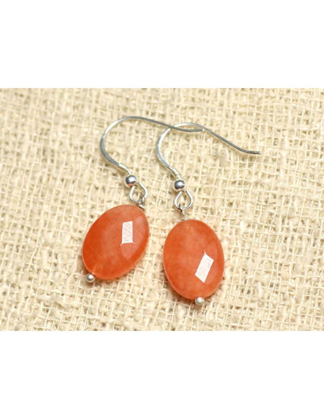 925 Silver and Stone Earrings - Orange Jade Faceted Oval 14mm
