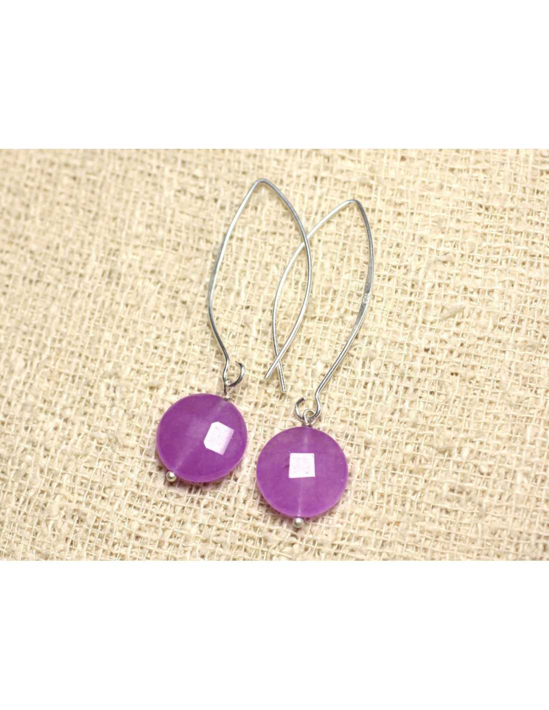 925 Silver and Stone Earrings - Purple Jade Pink Faceted Palets 14mm