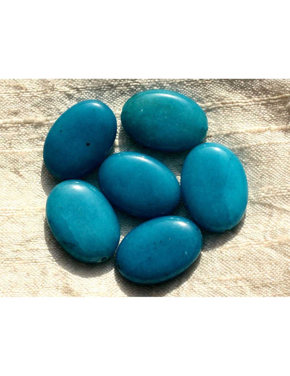 Thread 39cm - Stone Beads Large Oval 25x18mm Natural semi-precious stone tinted Color Turquoise Blue Shape Large Oval Dimensions Length 25mm x Width 18mm x Thickness 7mm approximately Drilling dimension 1.5mm approximately Sold by wire of 39cm Approximately 14 beads per wire