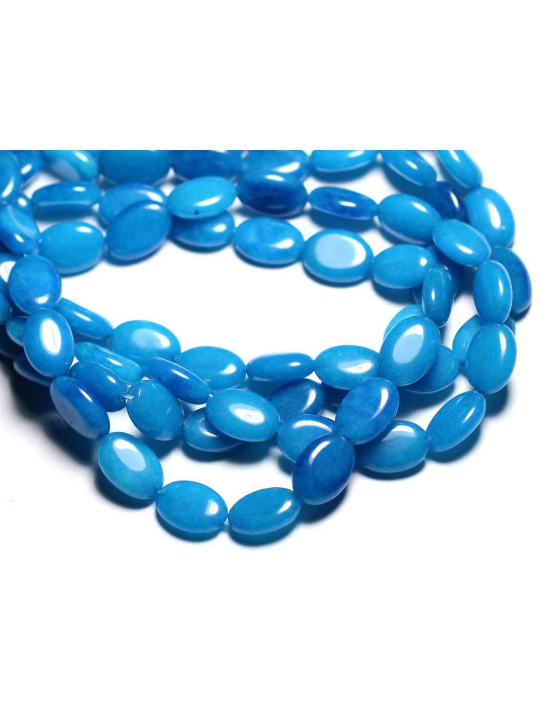 Thread 39cm - Oval Jade Stone Beads 14x10mm Turquoise Blue Natural semi precious stone tinted Turquoise Blue Oval Shape Dimensions Length 14mm x Width 10mm x Thickness 5mm approximately Drilling dimension 1mm approximately Sold by thread of 39cm Approximately 27 Beads per wire