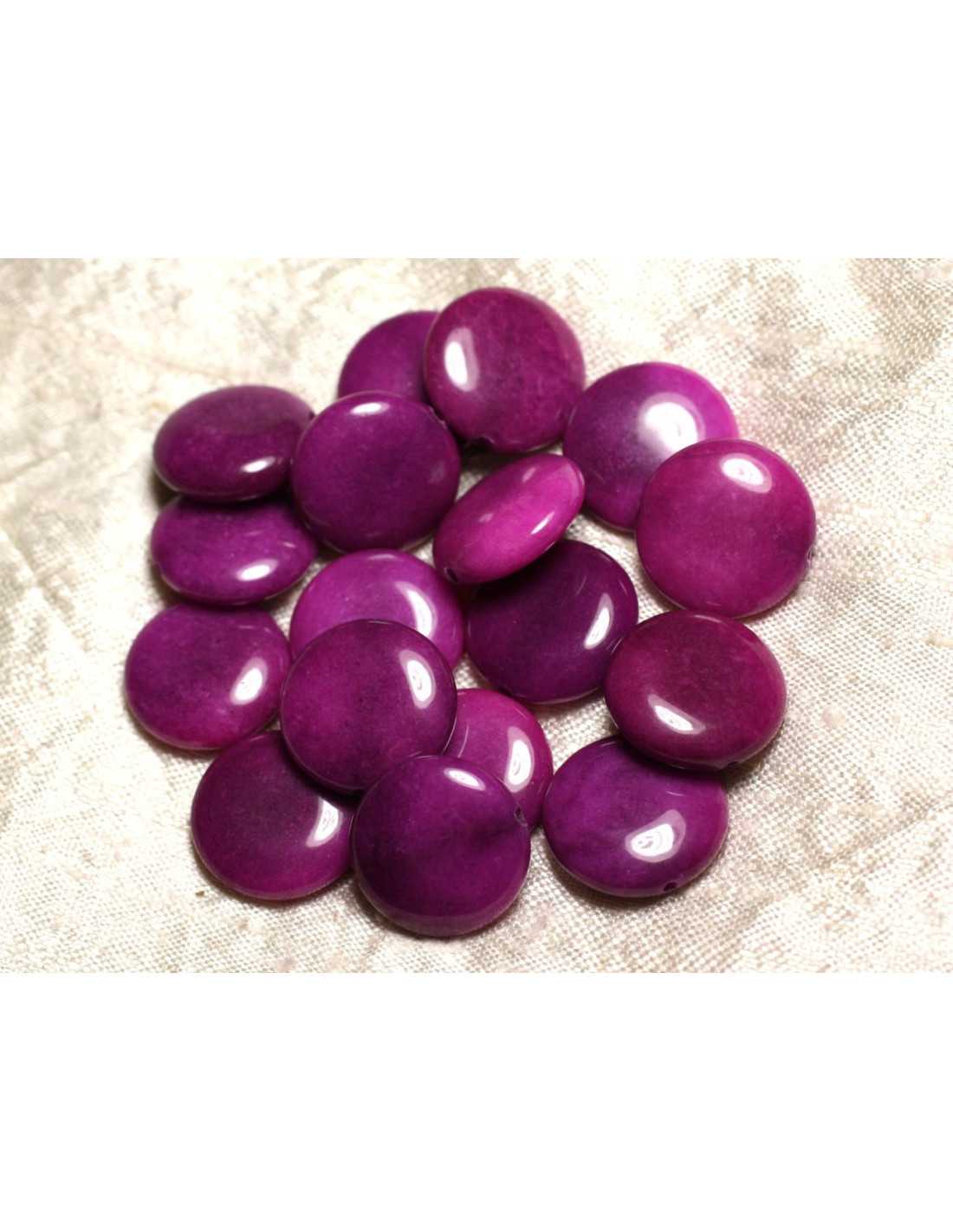 Thread 39cm - Jade Stone Beads Palets 18mm Natural semi-precious stone tinted Color Purple Magenta Shape Palets Dimensions Diameter 18mm x Thickness 5mm approximately Drilling dimension 1.5mm approximately Sold by wire of 39cm Approximately 20 beads per wire
