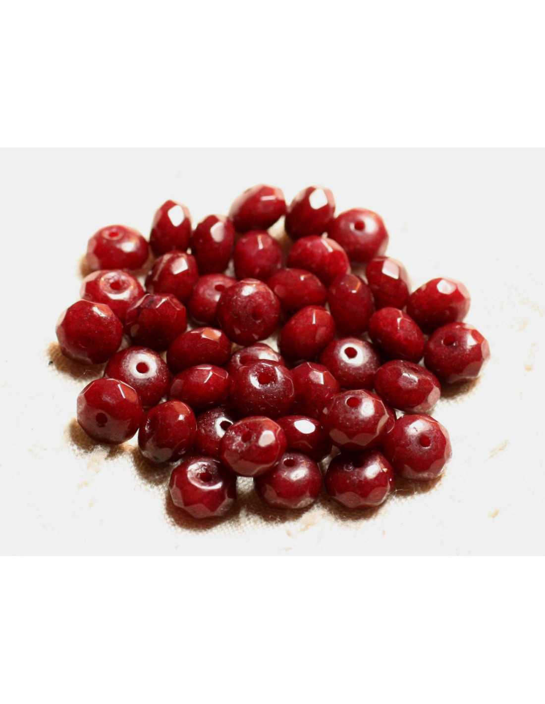 Thread 39cm - Jade Stone Beads Faceted Rondelles 8x5mm Natural tinted semi precious stone Color Bordeaux Red Shape Faceted Rondelles Dimensions Diameter 8mm x Thickness 5mm approximately Dimension Drilling approximately 1mm Sold by thread of 39cm Approximately 75 Pearls per thread