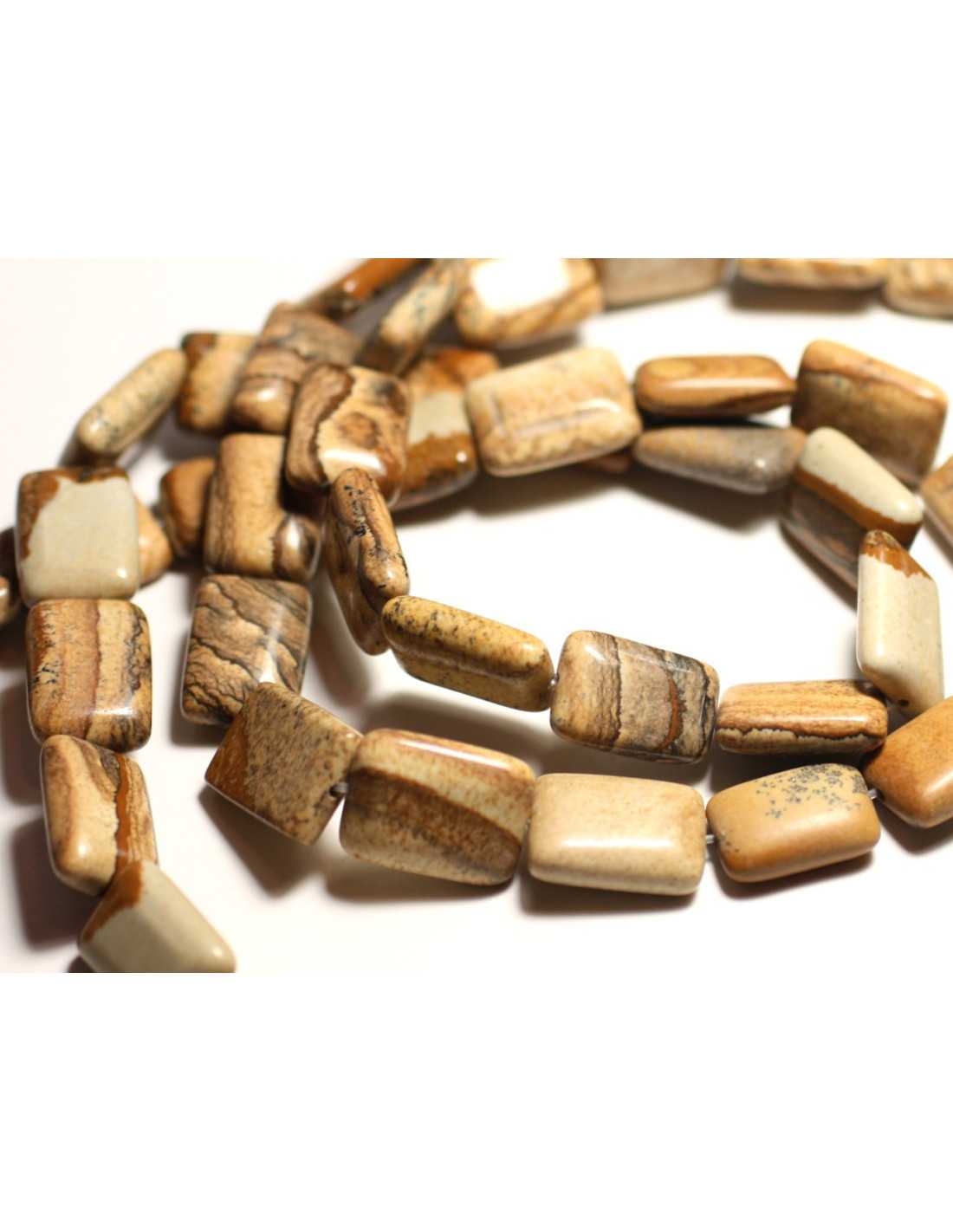 Thread 39cm - Beige Landscape Jasper Stone Beads Natural semi-precious stone Brown, yellow, beige Shape Rectangles Dimensions Length 18mm x Width 13mm x Thickness 6mm approximately Drilling dimension 1mm approximately Sold by thread of 39cm Approximately 21 beads per wire