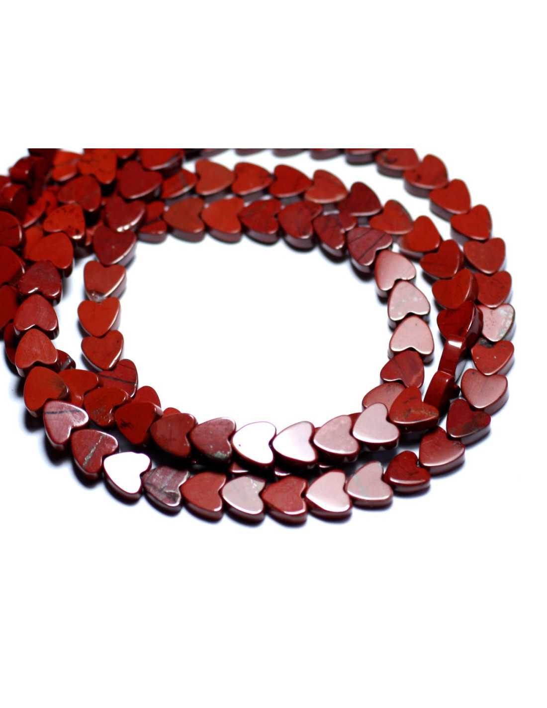 Thread 39cm - Red Jasper Stone Beads Natural semi-precious stone Color red, brick Shape Hearts Dimensions Length Width 6mm x Thickness 3mm approximately Drilling dimension 1mm approximately Sold by thread of 39cm Approximately 70 beads per wire