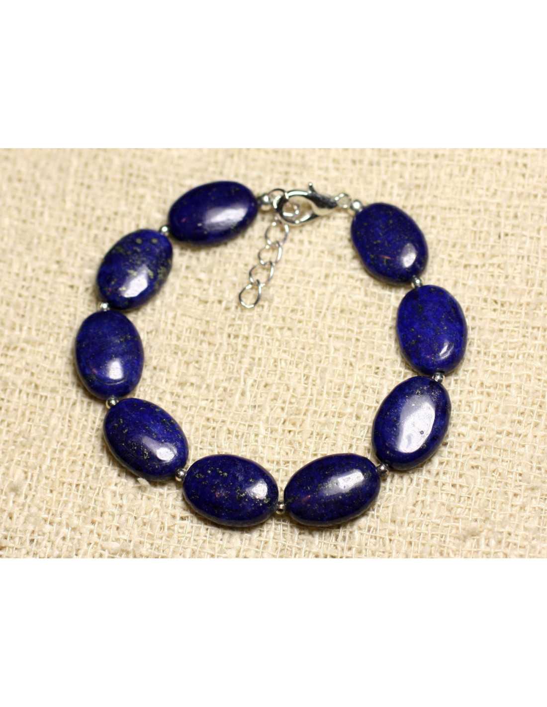 Bracelet 925 Silver and Lapis Lazuli semi-precious stone Oval Natural semi-precious stone Dark blue, gold color Oval pearls approximately 14x10x5mm 925 Silver pearls, 2mm round Lobster clasp and 925 Silver chain Length with clasp: 17 cm + 4 cm of silver chain Other stones and colors possible