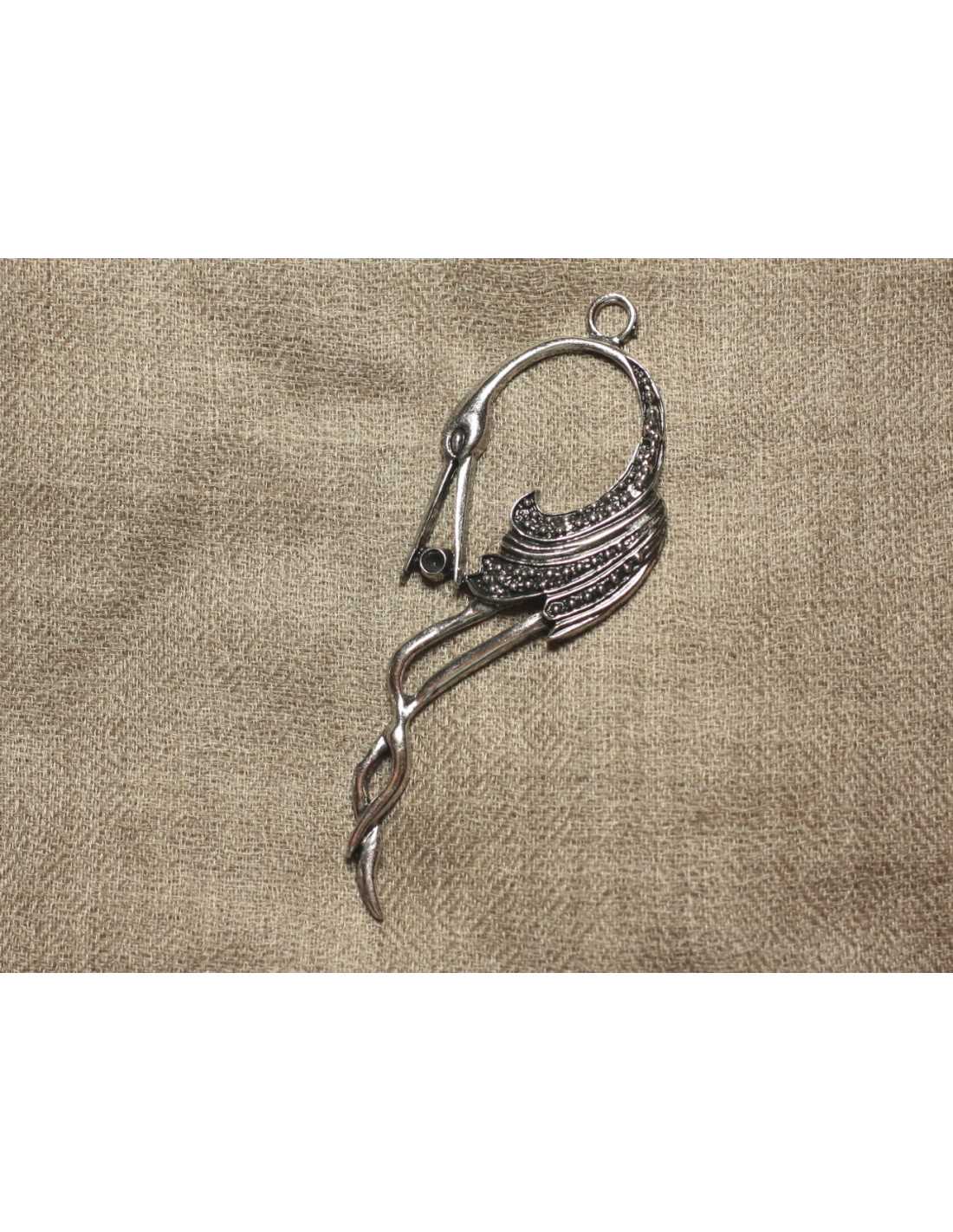 1pc - Silver Plated Rhodium Metal Charm Pendant Bird 92mm