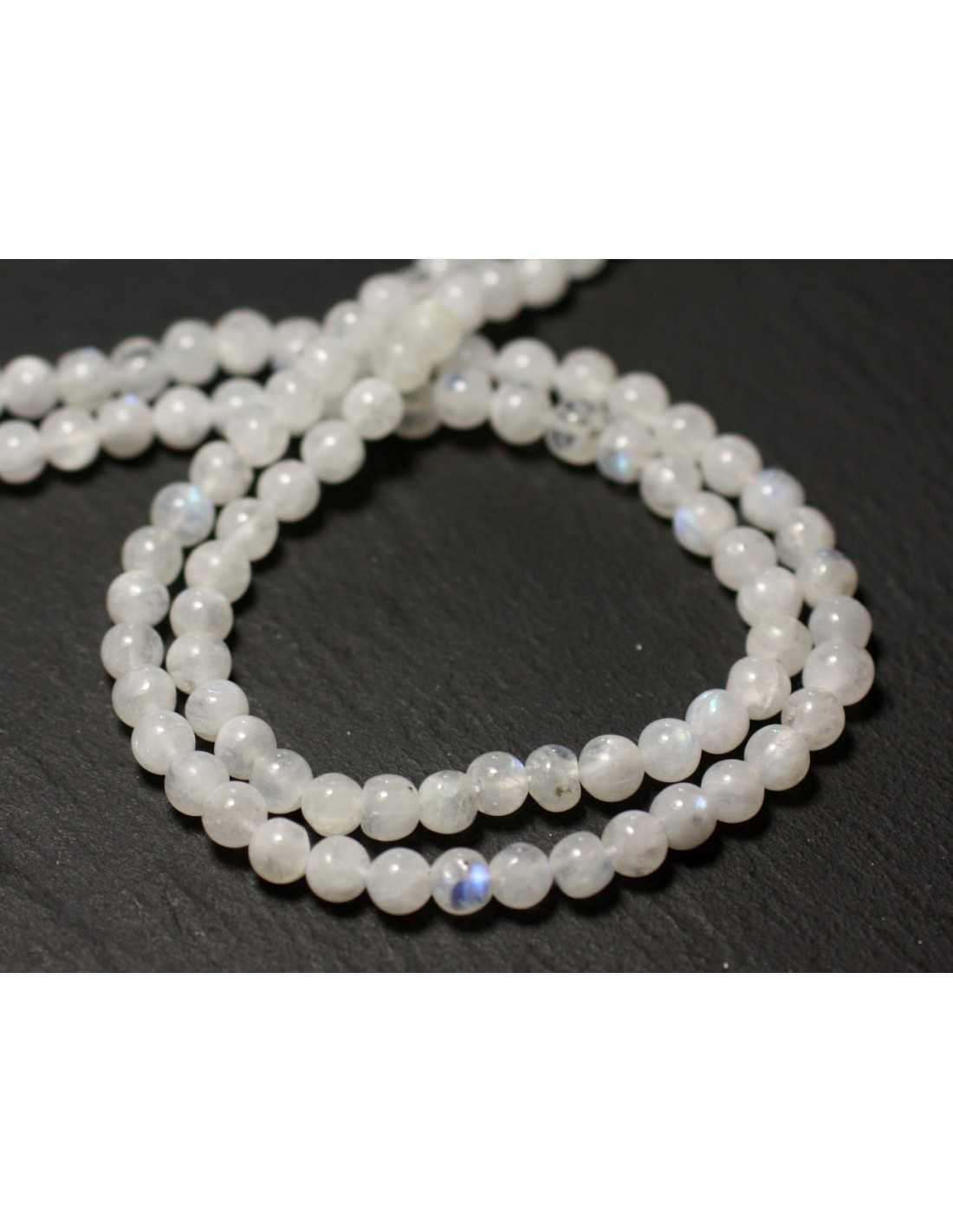 Stone beads White Moonstone Rainbow Natural semi-precious stone White color with blue reflections, multicolored Ball, round shape Dimension 3-4mm approximately Drilling dimension approximately 0.3mm Sold by 32cm strand Around 90 beads per strand