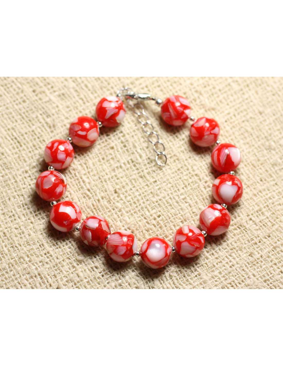 Bracelet Silver 925 Mother of Pearl and Resin 10mm Red and White