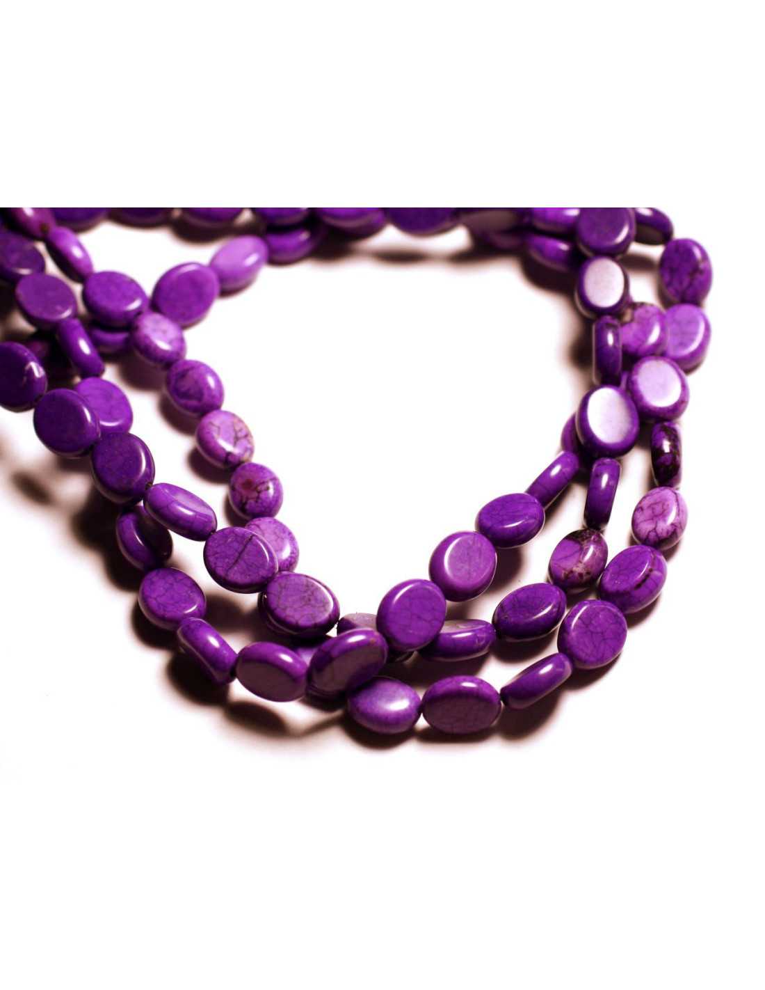 Thread 39cm - Synthetic Turquoise Stone Beads Reconstituted Oval 9x7mm Synthetic stone Color Purple Shape Oval drilled in the length Dimensions Length 9mm x Width 7mm x Thickness 4mm approximately Drilling dimension 1mm approximately Sold by thread of 39cm Approximately 41 beads per strand