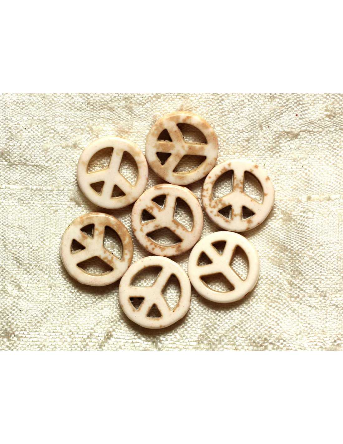 Thread 39cm - Turquoise Stone Beads Reconstituted Peace and Love 15mm Synthetic stone Color Cream white Peace and Love shape drilled from top to bottom Dimensions Diameter 15mm x Thickness 3-4mm approx Drilling dimension 1mm approx Sold by strand of 39cm approx. 25 beads per thread