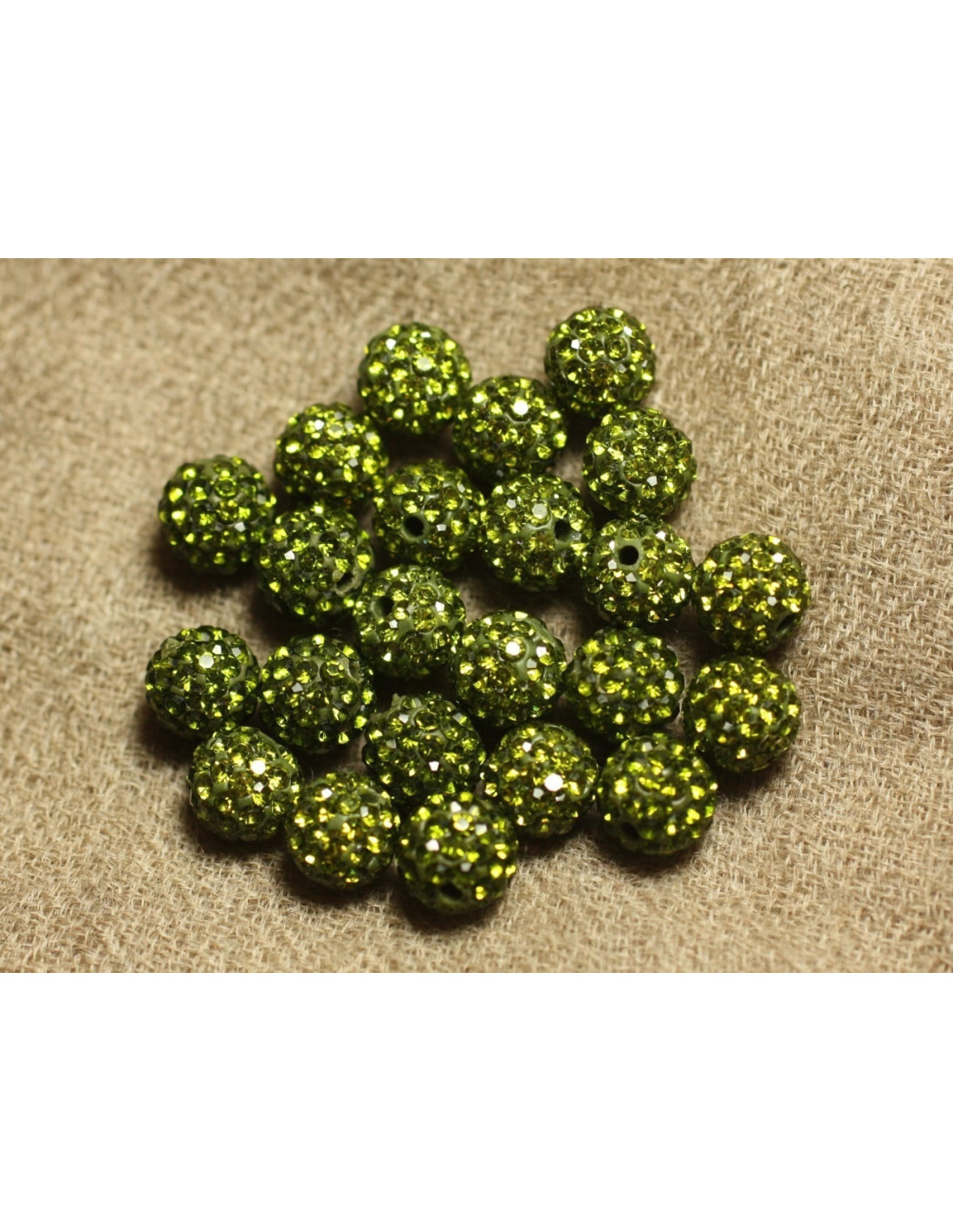 10pc - Polymer Bead and Glass Strass 10mm Olive Green 4558550022936