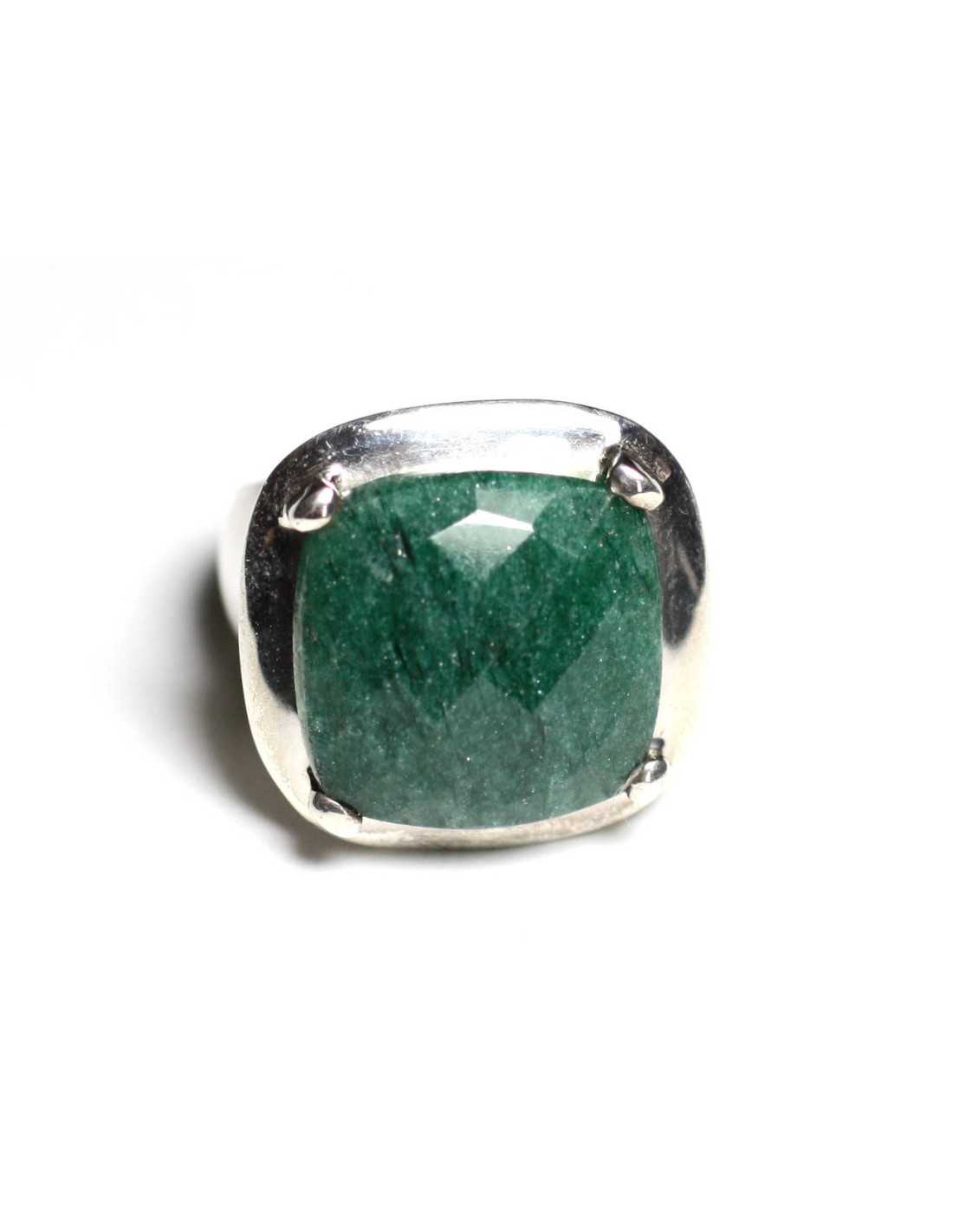 Ring Silver 925 and semi-precious stone Aventurine Natural semi-precious stone Color dark green, transparent Shape Square, Dimensions 18 x 18mm Sterling silver frame guaranteed 4 Prongs Ring width 23mm Height 12mm Finger size: 52 Other sizes possible