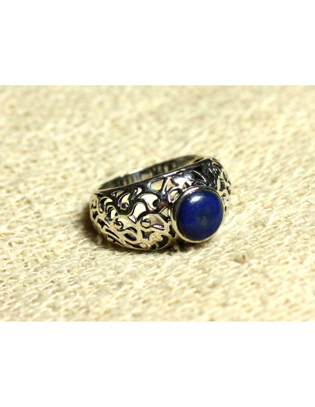 Ring 925 Silver and Lapis Lazuli semi precious stone Filigree Arabesques Natural semi precious stone Dark blue, golden color Shape Round Dimension 8x5mm Guaranteed 925/1000 silver Stone set Ring width 4-12mm Ring height 9mm Finger size: 55 Others sizes possible