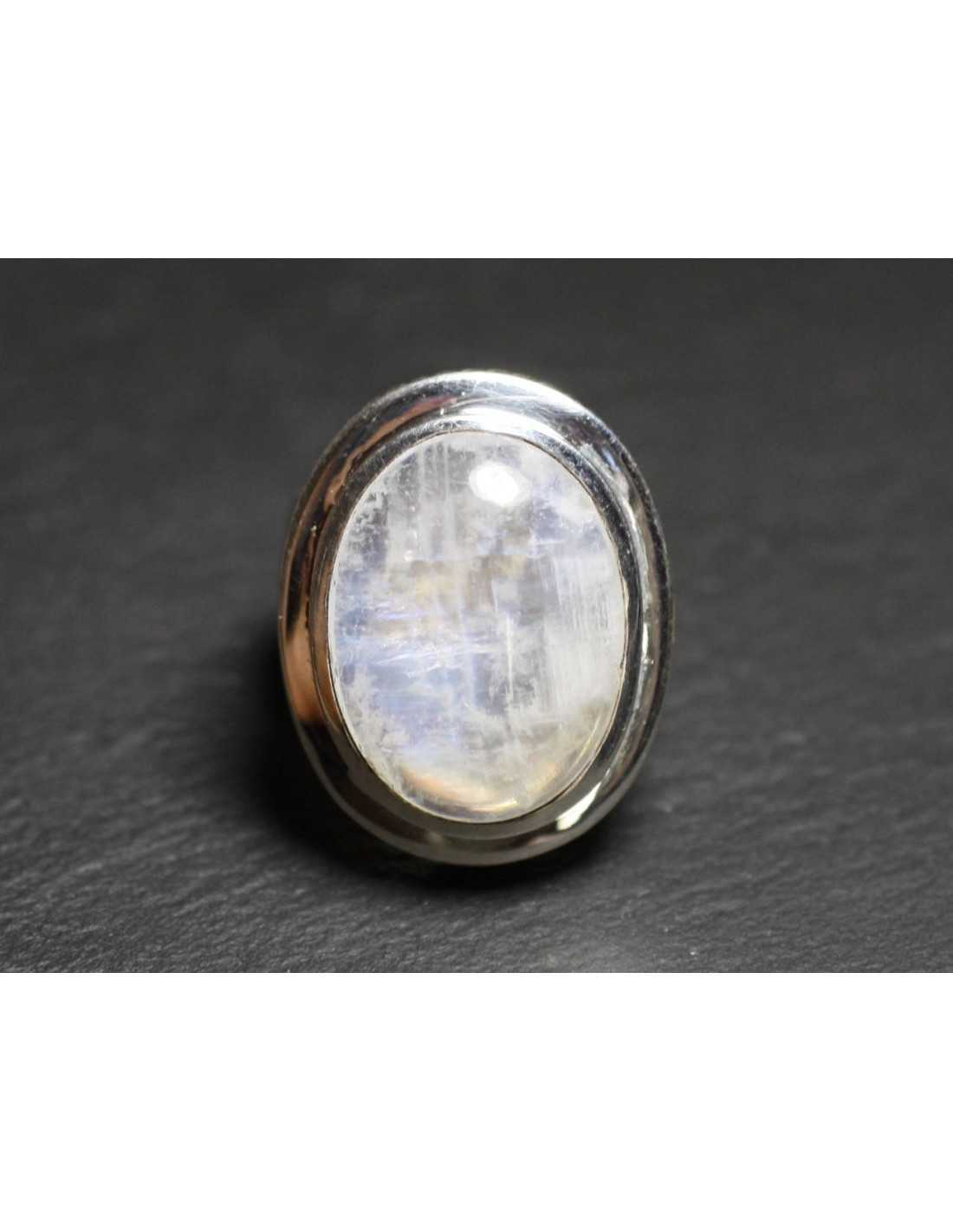 Ring Silver 925 and semi-precious stone Moonstone Rainbow Natural semi-precious stone Color white, transparent with blue reflections Oval shape Dimensions 20 x 15 mm Guaranteed 925/1000 silver Stone set Ring width 4.5 - 14 mm Height of the ring 12mm Finger Size: 51 Other sizes possible