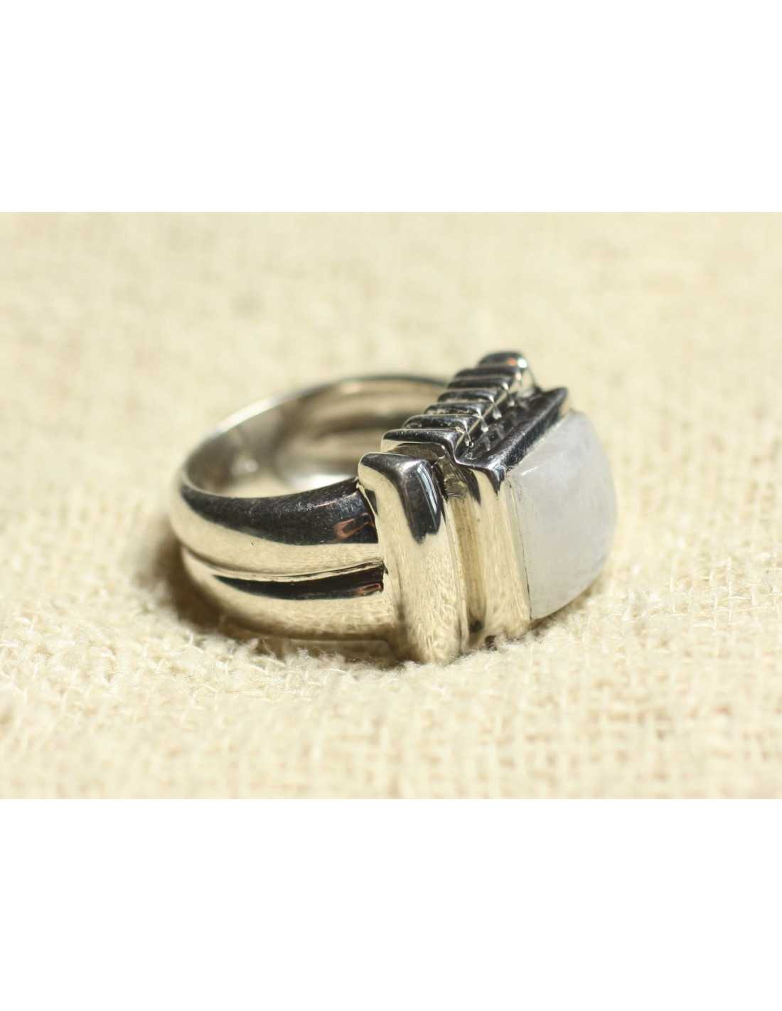 Ring Silver 925 and semi-precious stone Moonstone Rainbow Natural semi-precious stone Color white with blue reflections Square Shape Dimensions 10 x 10 x 3 mm Guaranteed 925/1000 silver Stone set Ring width 8-10mm Height of the ring 10mm Finger Size: 54 Other sizes possible