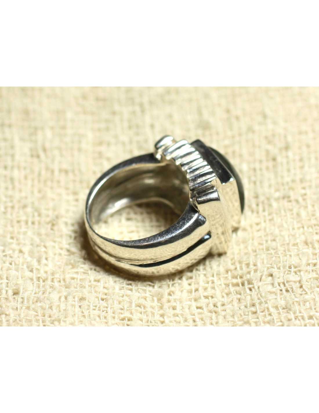 Ring 925 Silver and Labradorite semi precious stone Natural semi precious stone Gray color with blue green reflections Square Shape Dimensions 10 x 10 x 3 mm Guaranteed 925/1000 silver Stone set Ring width 8-10mm Ring height 10mm Size of Finger: 52 Other sizes possible
