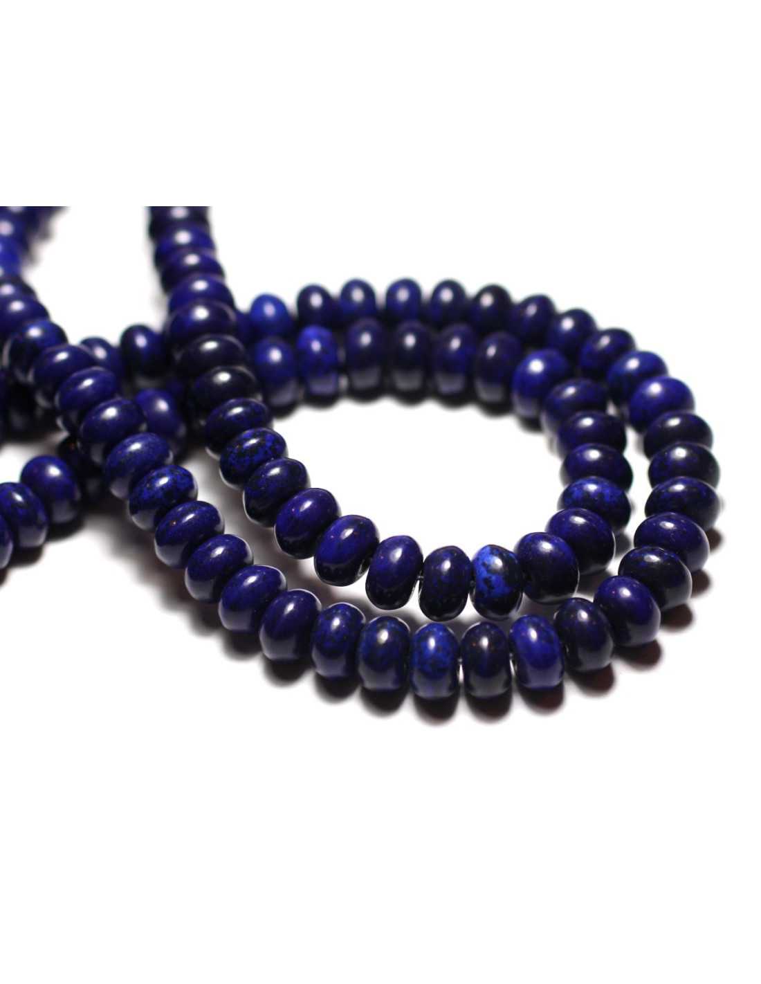 Thread 39cm - Turquoise Stone Beads Synthesis Rondelles 8x5mm Turquoise Synthesis reconstituted Color Midnight blue Shape Rondelles Dimensions Diameter 8mm x Thickness 5mm approximately Drilling dimension 1mm approximately Sold by wire of 39cm Approximately 81 beads per wire