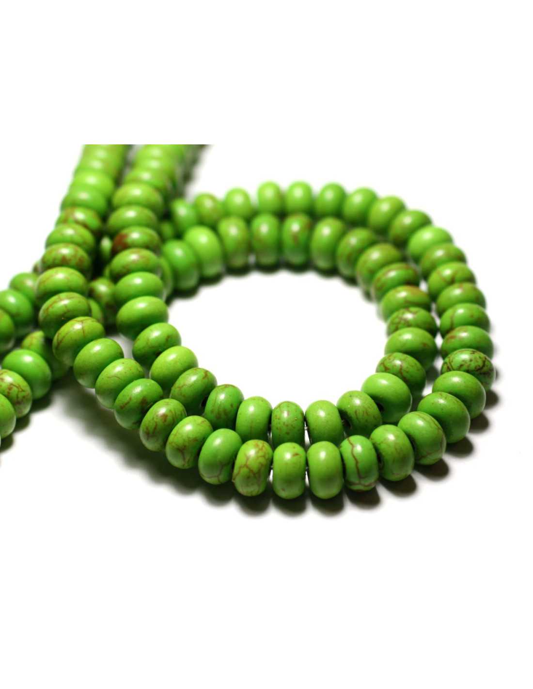 Thread 39cm - Turquoise Stone Beads Synthesis Rondelles 8x5mm Turquoise Synthesis reconstituted Color Green Shape Rondelles Dimensions Diameter 8mm x Thickness 5mm approximately Drilling dimension 1mm approximately Sold by thread of 39cm Approximately 81 beads per wire