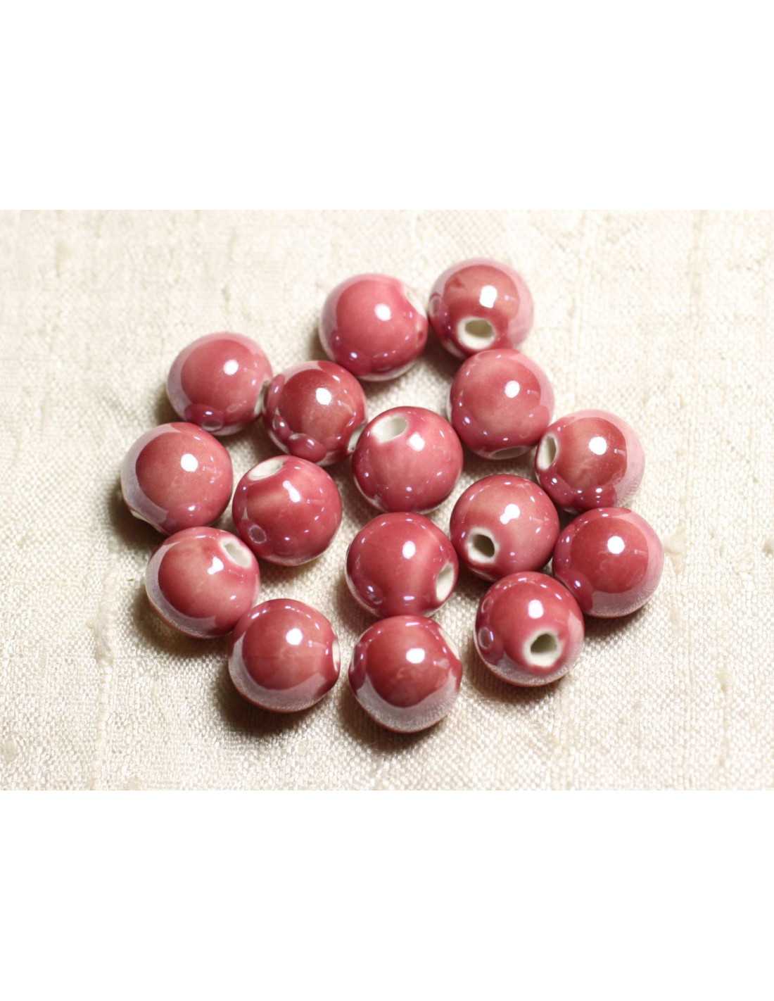 Porcelain Ceramic Beads Round 12mm Color Pink Coral Peach, iridescent Ball shape, round Dimension approximately 12mm Drilling dimension approximately 3mm Sold in bags of 100 beads Available in other sizes and colors