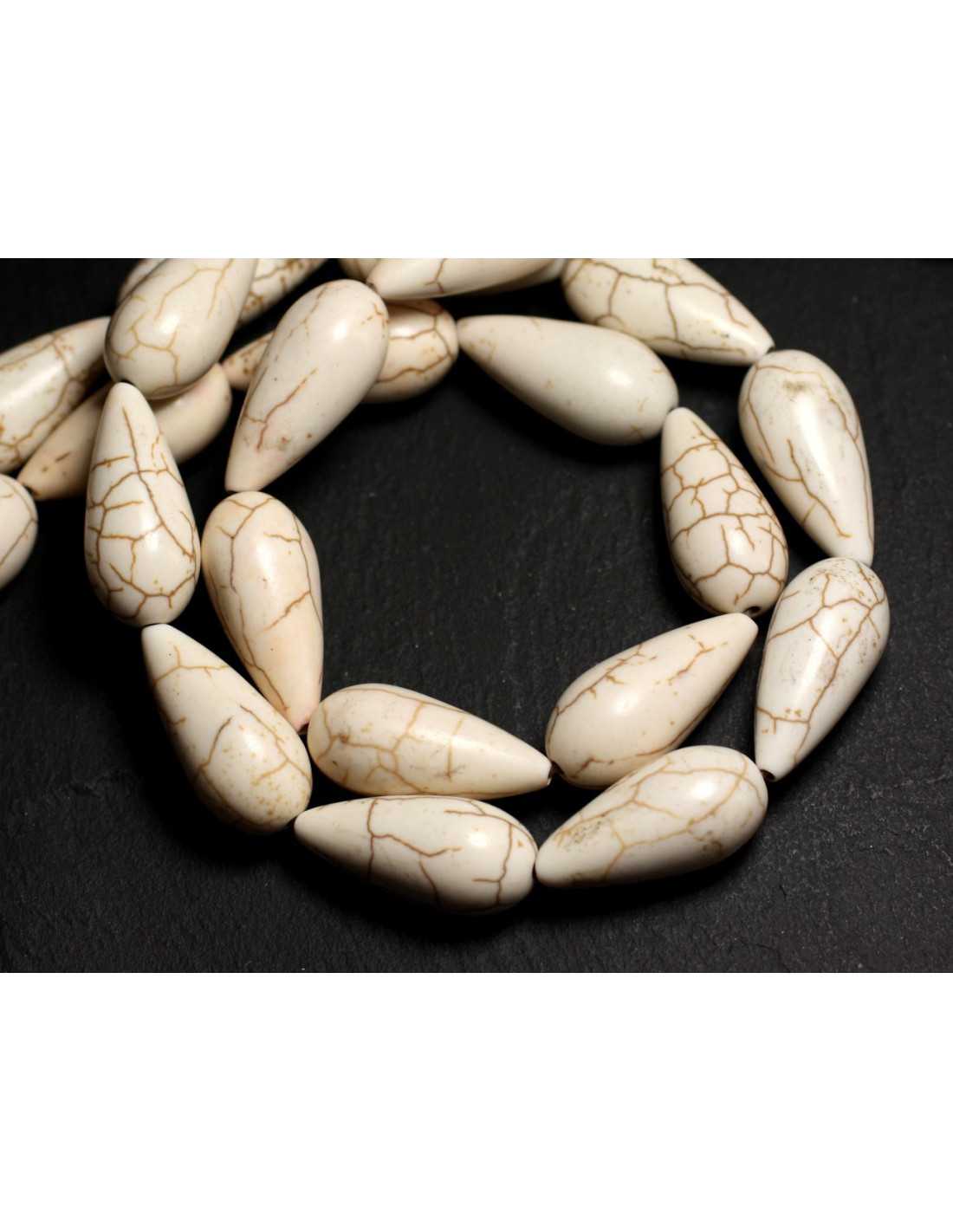 4pc - Stone Beads - Synthetic reconstituted turquoise Drops 25mm Cream white 4558550005472