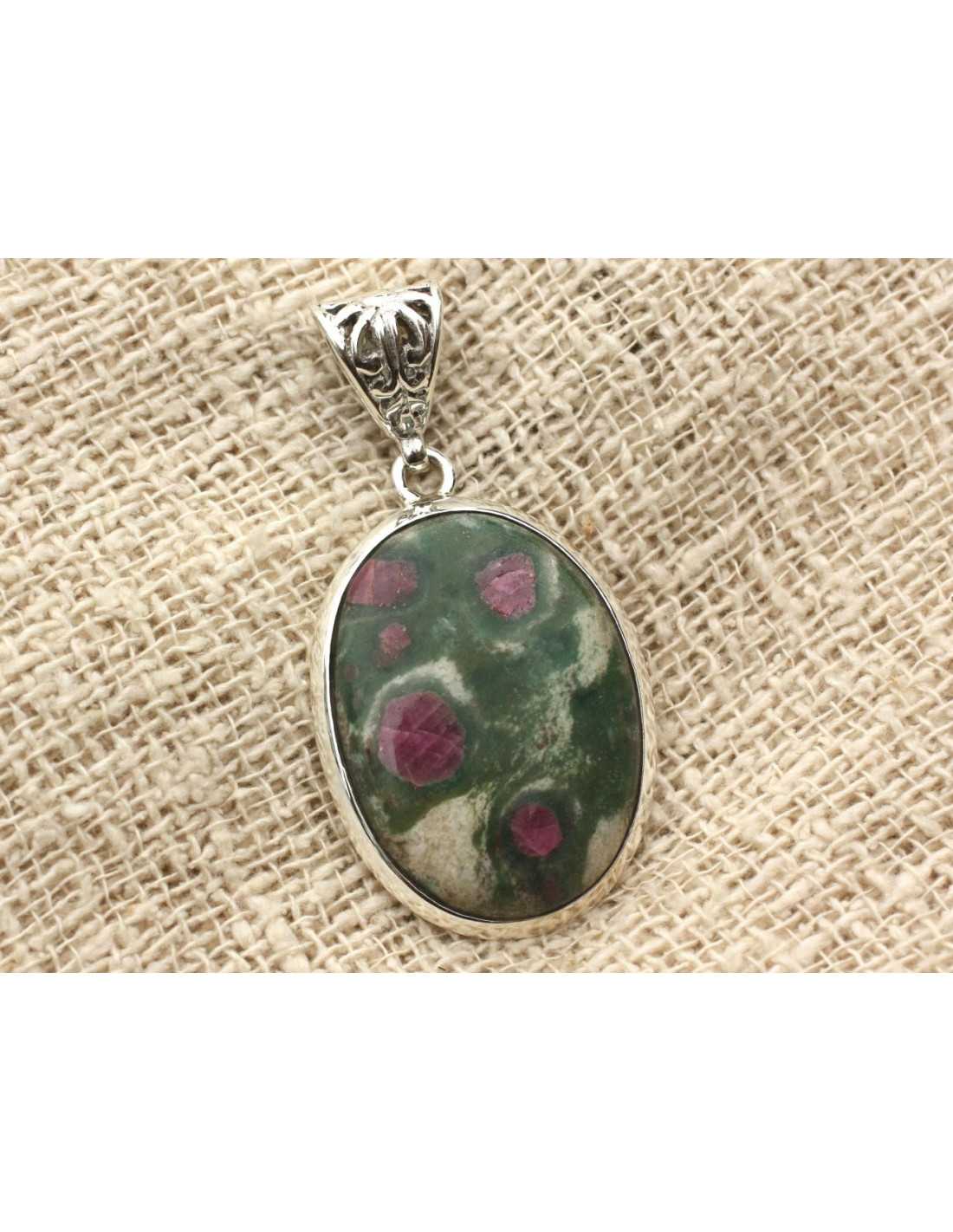 n1 - Pendant Silver 925 and Stone - Ruby Zoisite Oval 29x21mm