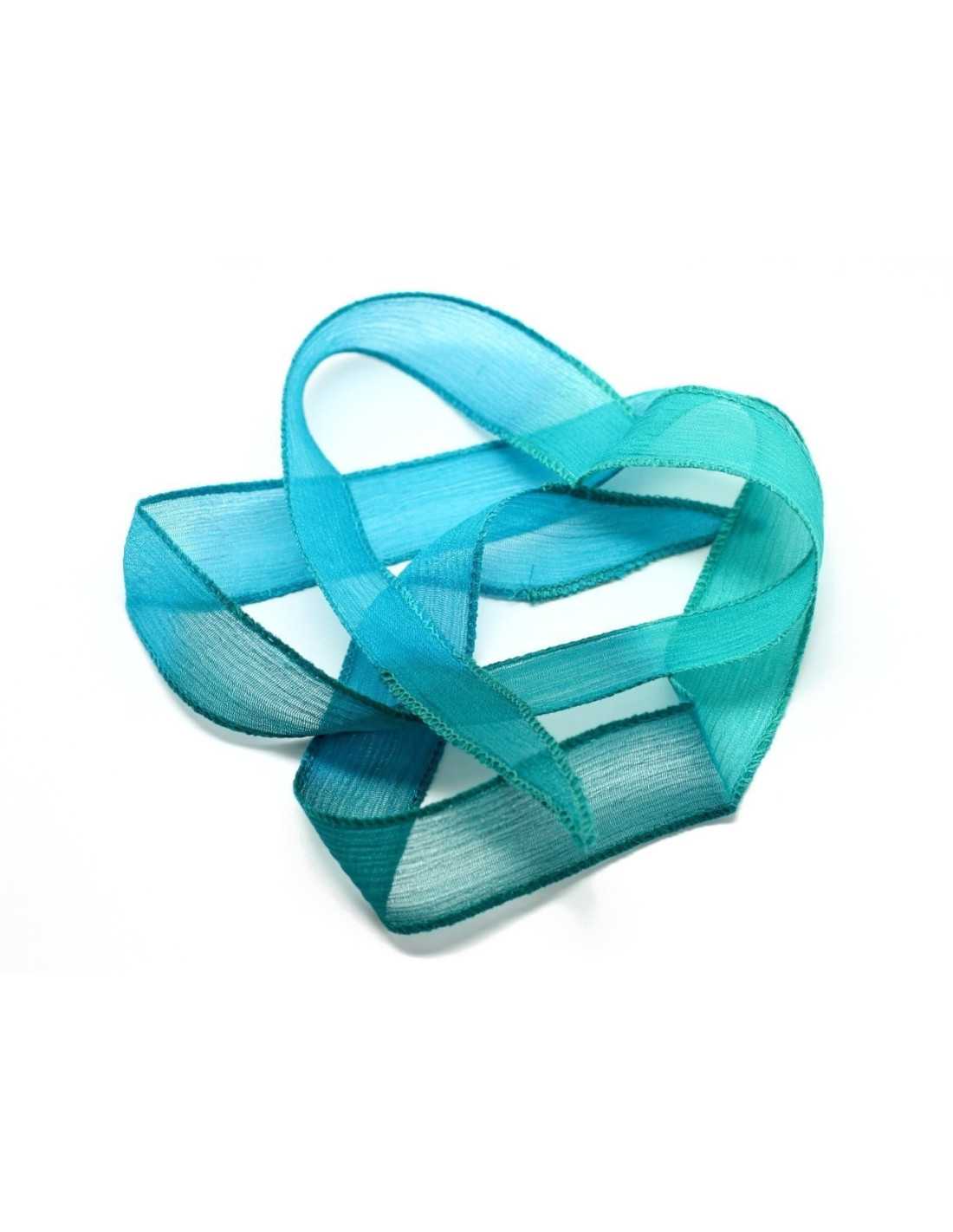 1pc - Hand Dyed Silk Ribbon Necklace 85 x 2.5cm Teal Green Blue (ref SOIE128) 4558550003157