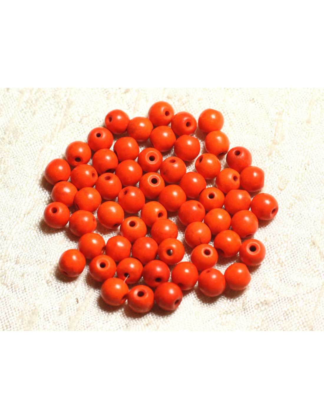 Thread 39cm - Turquoise Stone Beads Reconstituted Synthesis 6mm Balls Synthetic stone Color Orange Ball shape, round Dimensions approximately 6mm Drilling size approximately 1mm Sold by 39cm wire Approximately 63 beads per wire