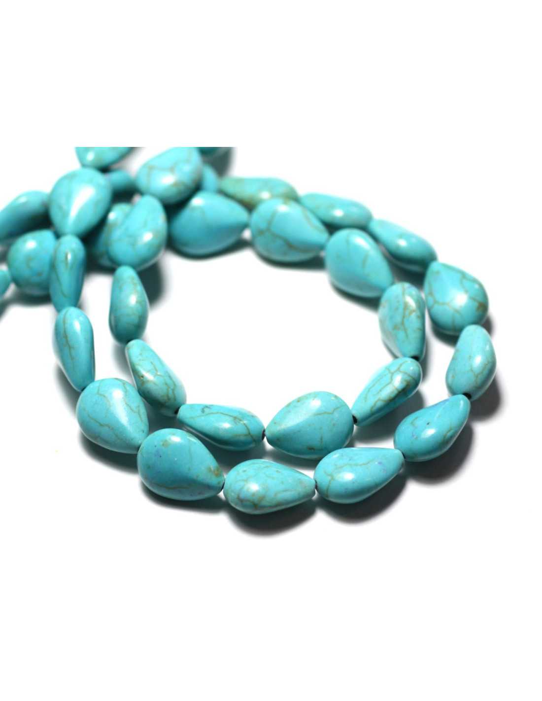 Thread 39cm - Synthetic Turquoise Stone Beads 14x10mm Turquoise Synthesis Reconstituted Color Turquoise Blue Shape Drops Dimensions Length 14mm x Width 10mm x Thickness 6mm approximately Drilling in the width dimension 1mm approximately Sold by strand of 39cm Approximately 28 beads per strand