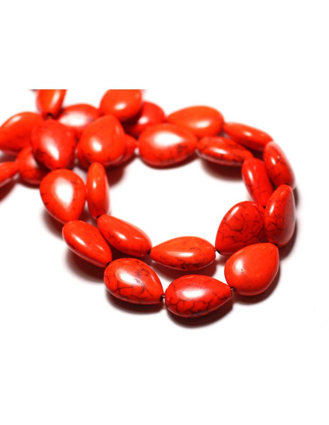 Thread 39cm - Turquoise Stone Beads Synthesis Drops 18x14mm Turquoise Synthesis reconstituted Color Orange Shape Drops Dimensions Length 18mm x Width 14mm x Thickness 7mm approximately Drilling in the width dimension 1mm approximately Sold by thread of 39cm Approximately 22 beads per thread