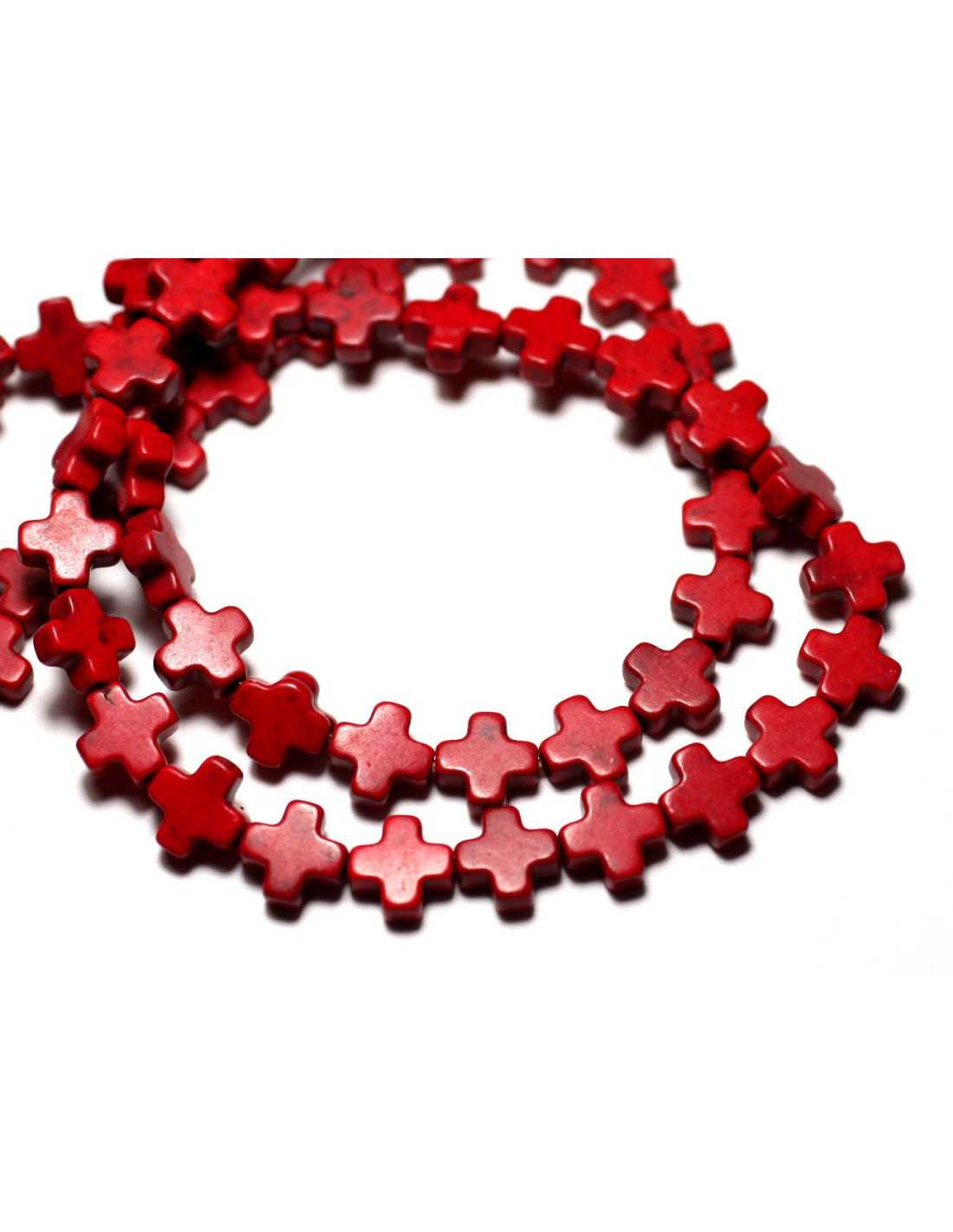 Fil 39cm 49pc env - Perles de Pierre Turquoise Synthèse Croix 8mm Rouge Bordeaux