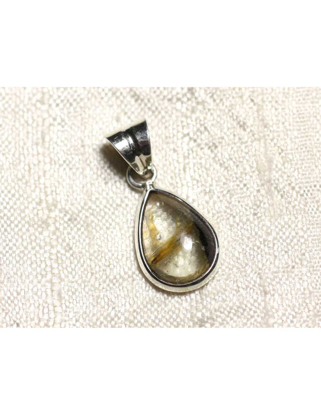 Pendant Sterling silver 925 and semi-precious stone Tourmaline Natural semi-precious stone Color transparent white, yellow, black Drop shape Dimensions Length 14mm x Width 10mm x Thickness 5mm approximately Stone set on solid silver 925/1000 Delivered with a waxed cotton or organza necklace, color of your choice