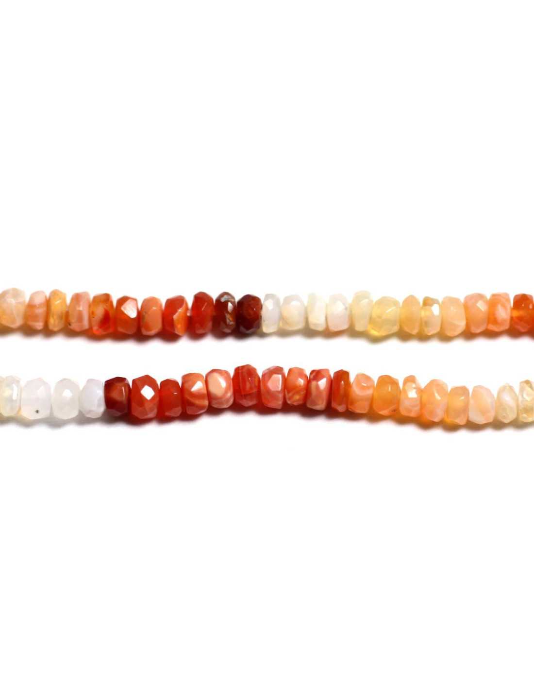 Perline in pietra opale di fuoco Rondelle sfaccettate Pietra semipreziosa naturale Colore bianco, giallo, arancione, rosso Rondelle sfaccettate di forma Dimensioni circa 2,5 mm x 1,5 mm Dimensione foratura circa 0,3 mm Venduto in un sacchetto di 10 perline