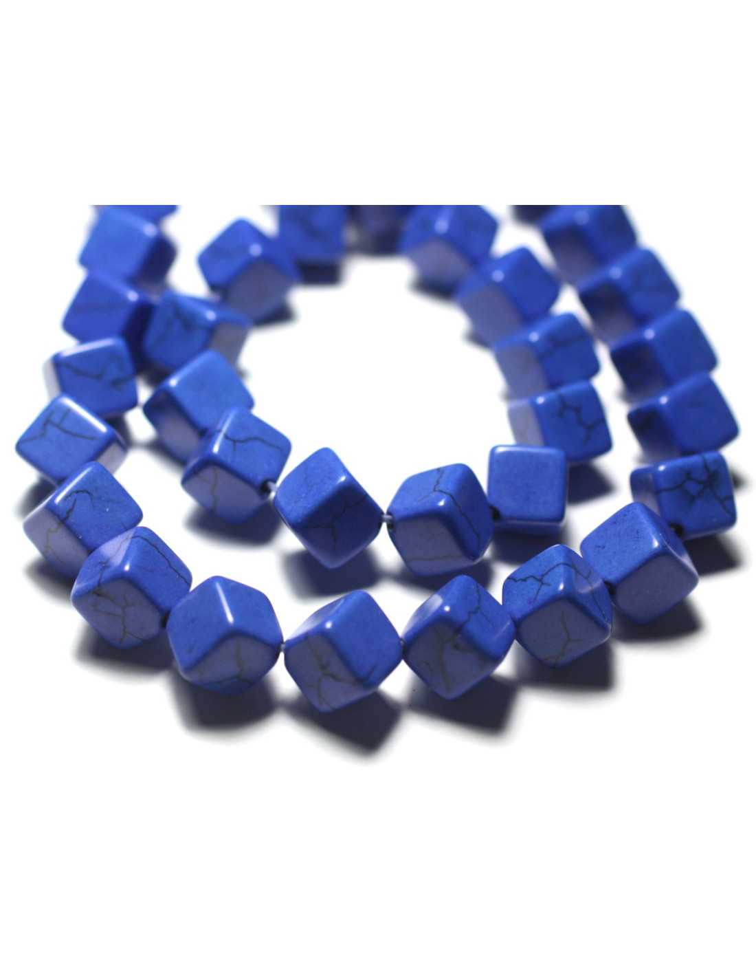Filo 39 cm circa 34 pz - Cubi di perle sintetiche turchesi 8x8 mm blu notte