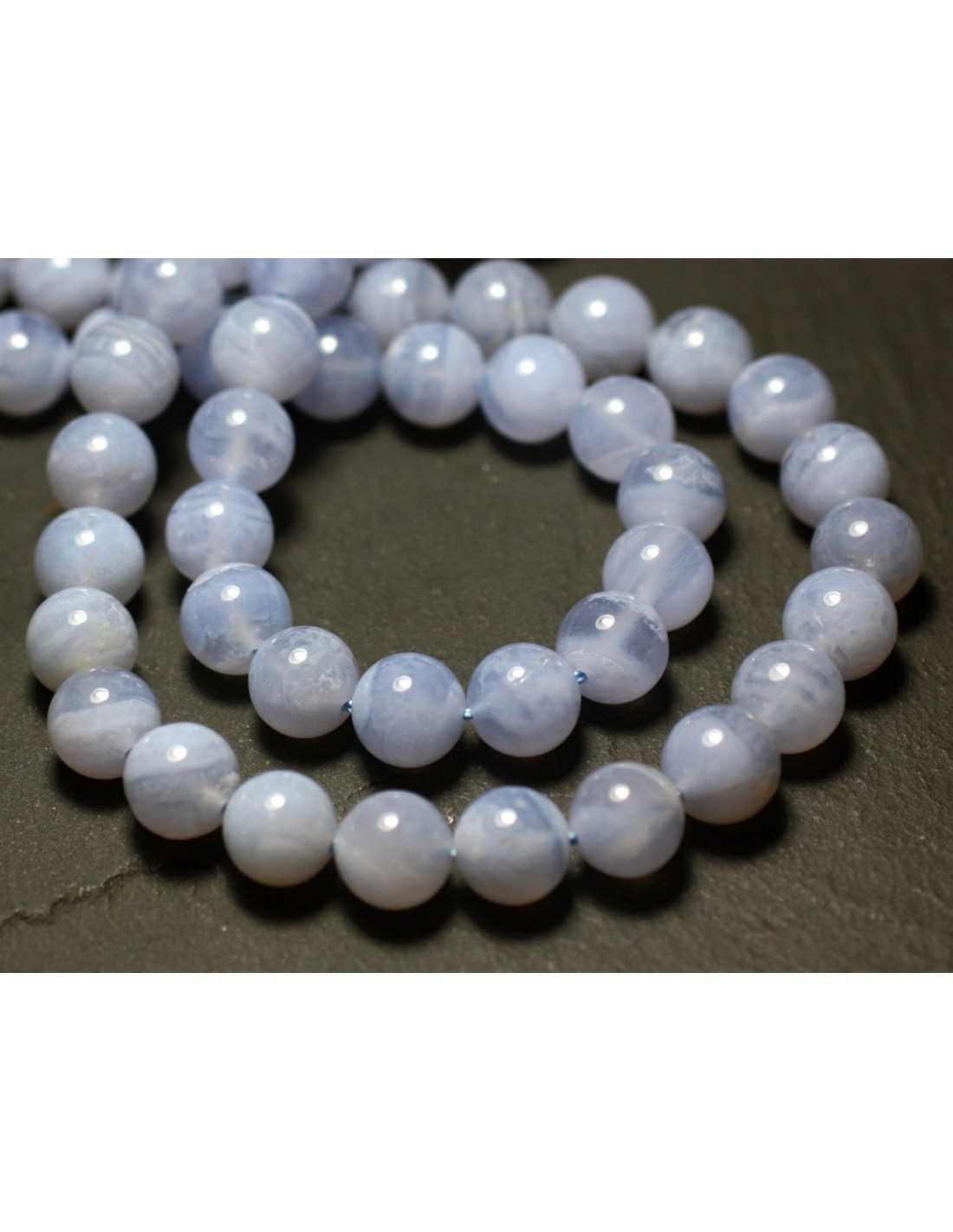 Filo 39 cm 62 pz circa - Perline di pietra - Palline di calcedonio blu 6 mm
