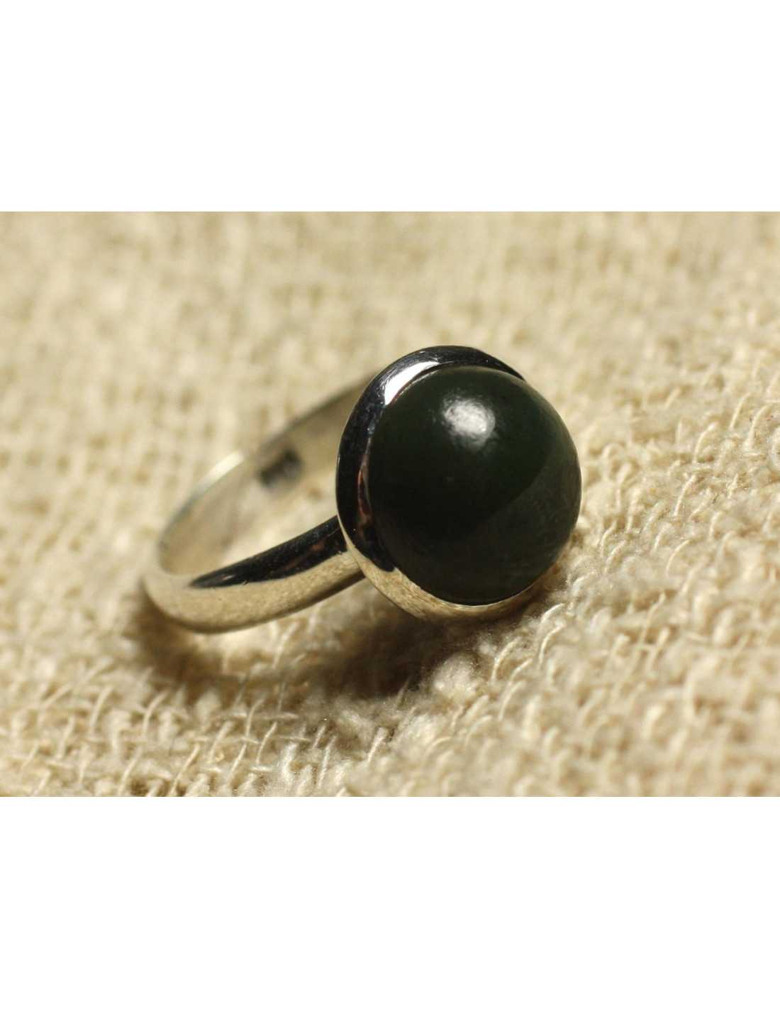 Anello Argento 925 Giada Canada Nefrite Tondo 10mm Misura Regolabile