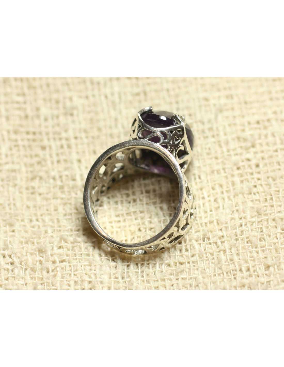 n111 - Anello in argento sterling 925 e pietra - Ametista ovale sfaccettata 16x12mm