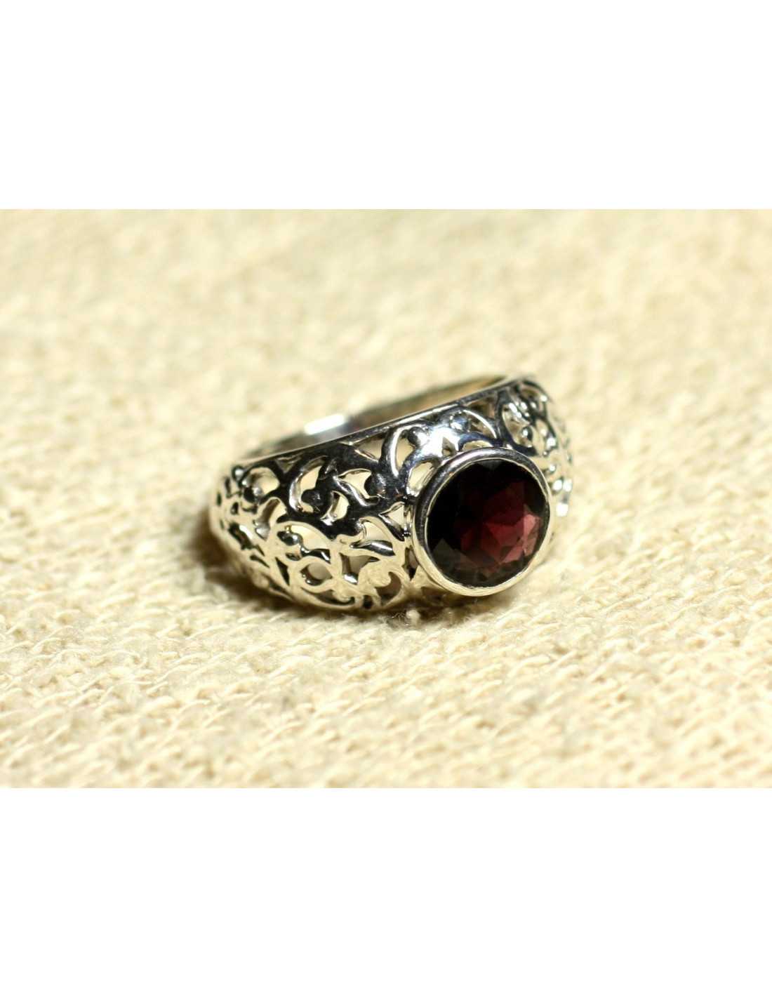 N112 - Anello in argento 925 e pietra arabica in filigrana - Granato rotondo sfaccettato da 8 mm