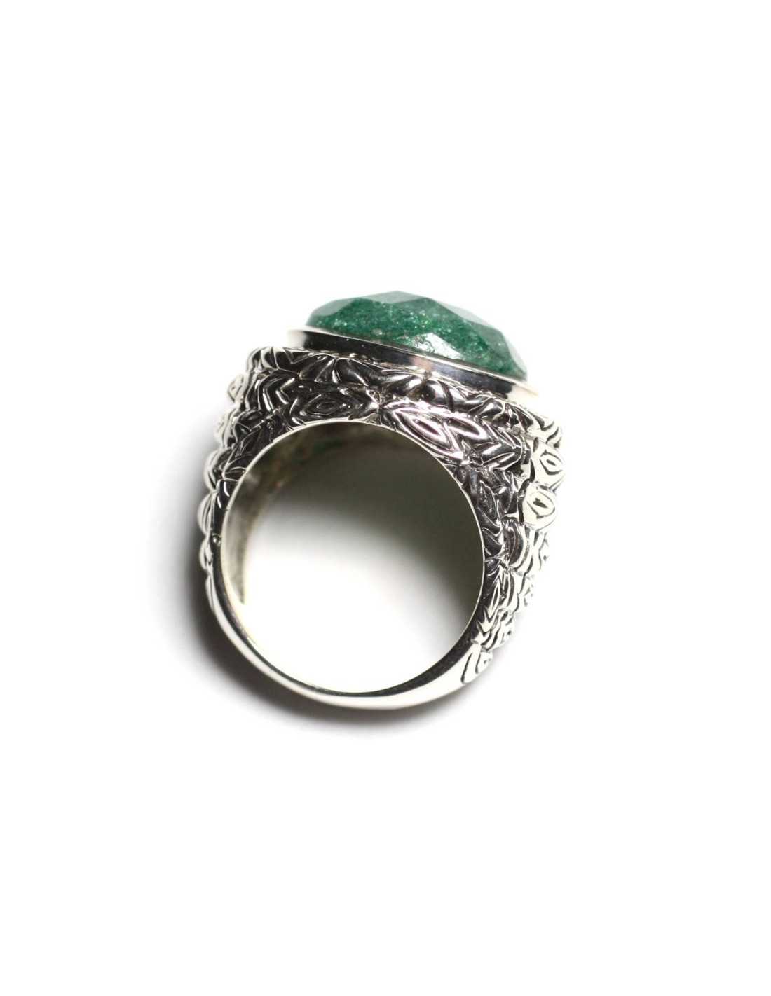 n114 - Anello in argento 925 e pietra - Avventurina ovale sfaccettata 16x12mm