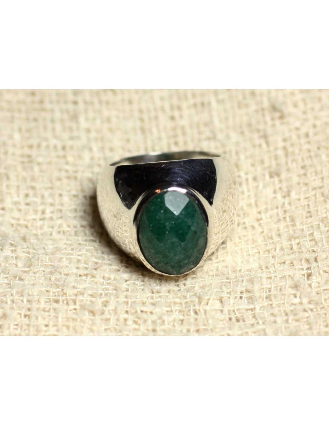 n116 - Anello in argento 925 e pietra - Avventurina verde sfaccettata ovale 14x10mm