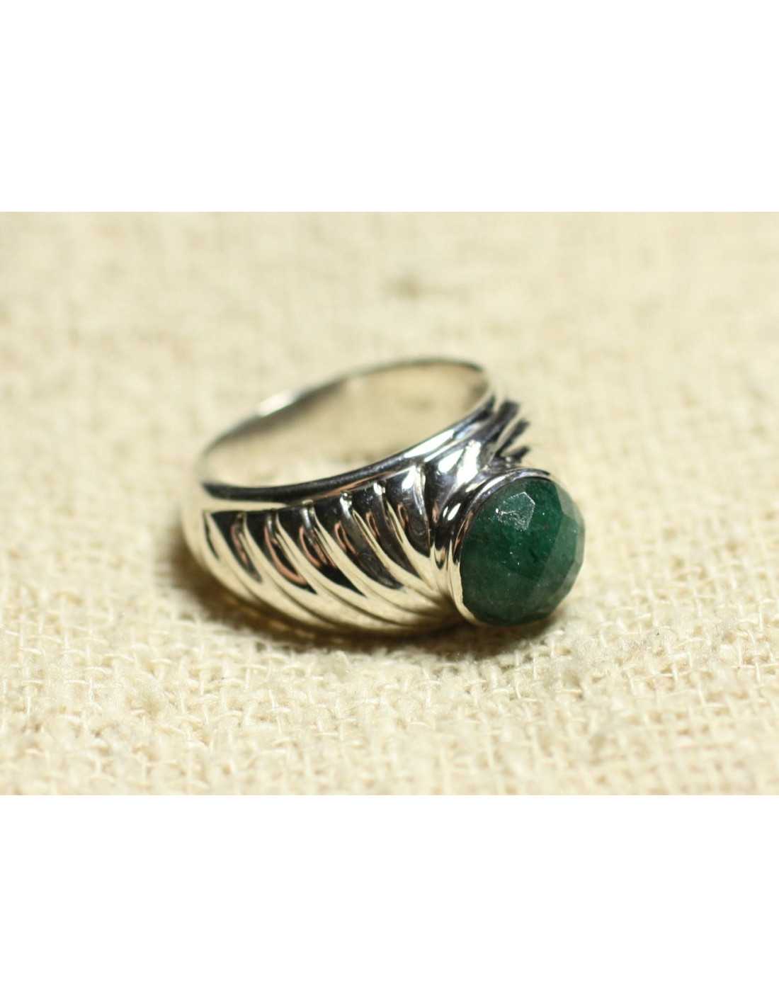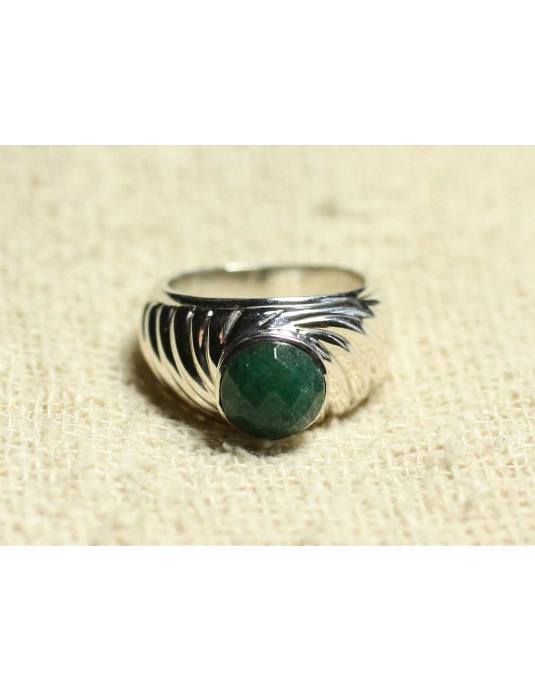 N121 - Anello in argento 925 e pietra - Avventurina verde sfaccettata rotonda 9 mm