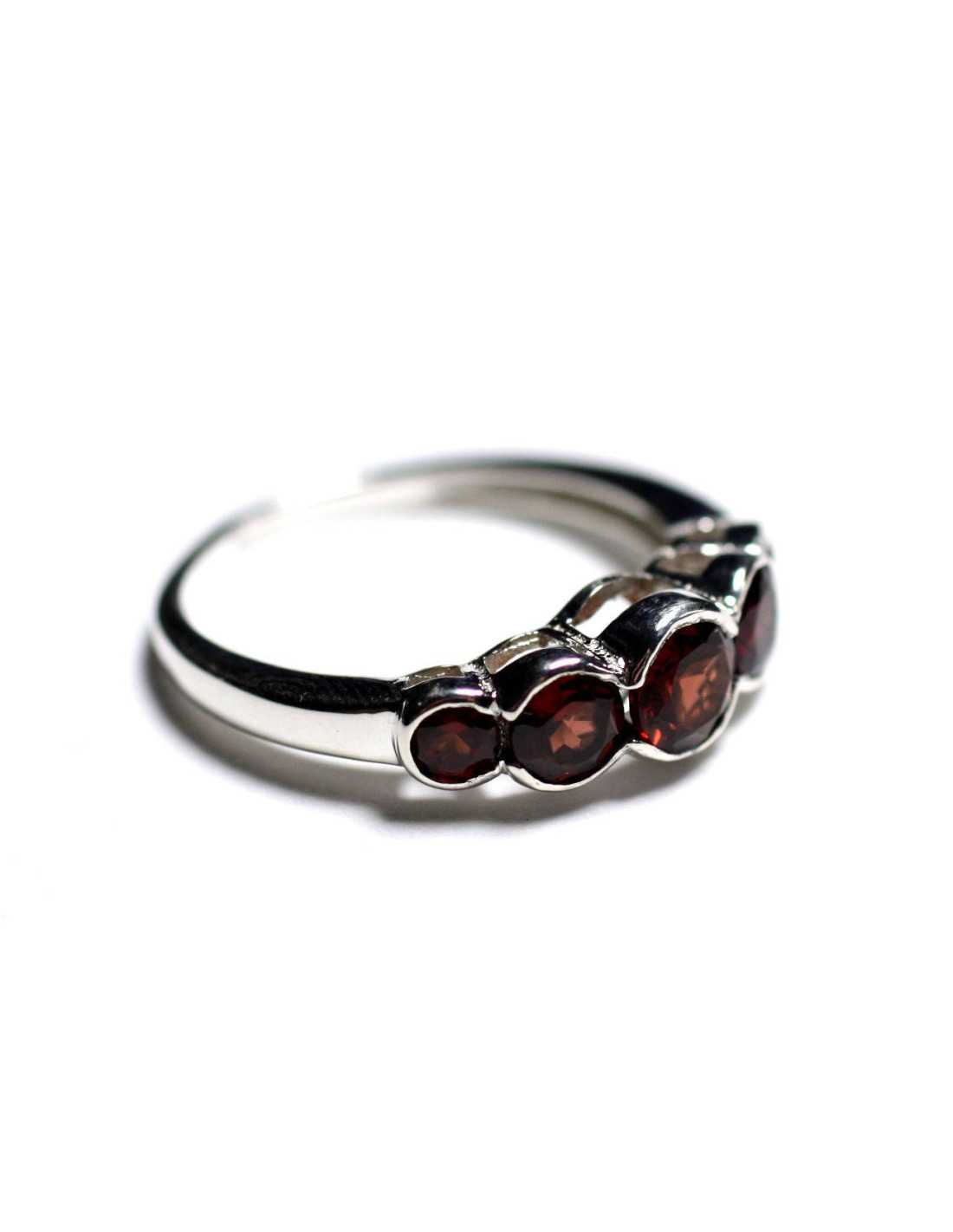 Anello Argento 925 e Pietra Granato Pietra semipreziosa naturale Colore rosso bordeaux, trasparente Pietre tonde sfaccettate sfumate Dimensioni 2,5 mm, 3,5 mm e 4,5 mm Pietre ondulate Anello in argento massiccio 925/1000 Larghezza anello 1-2 mm Altezza anello 5 -6mm Misura dito 53 Altre misure possibili