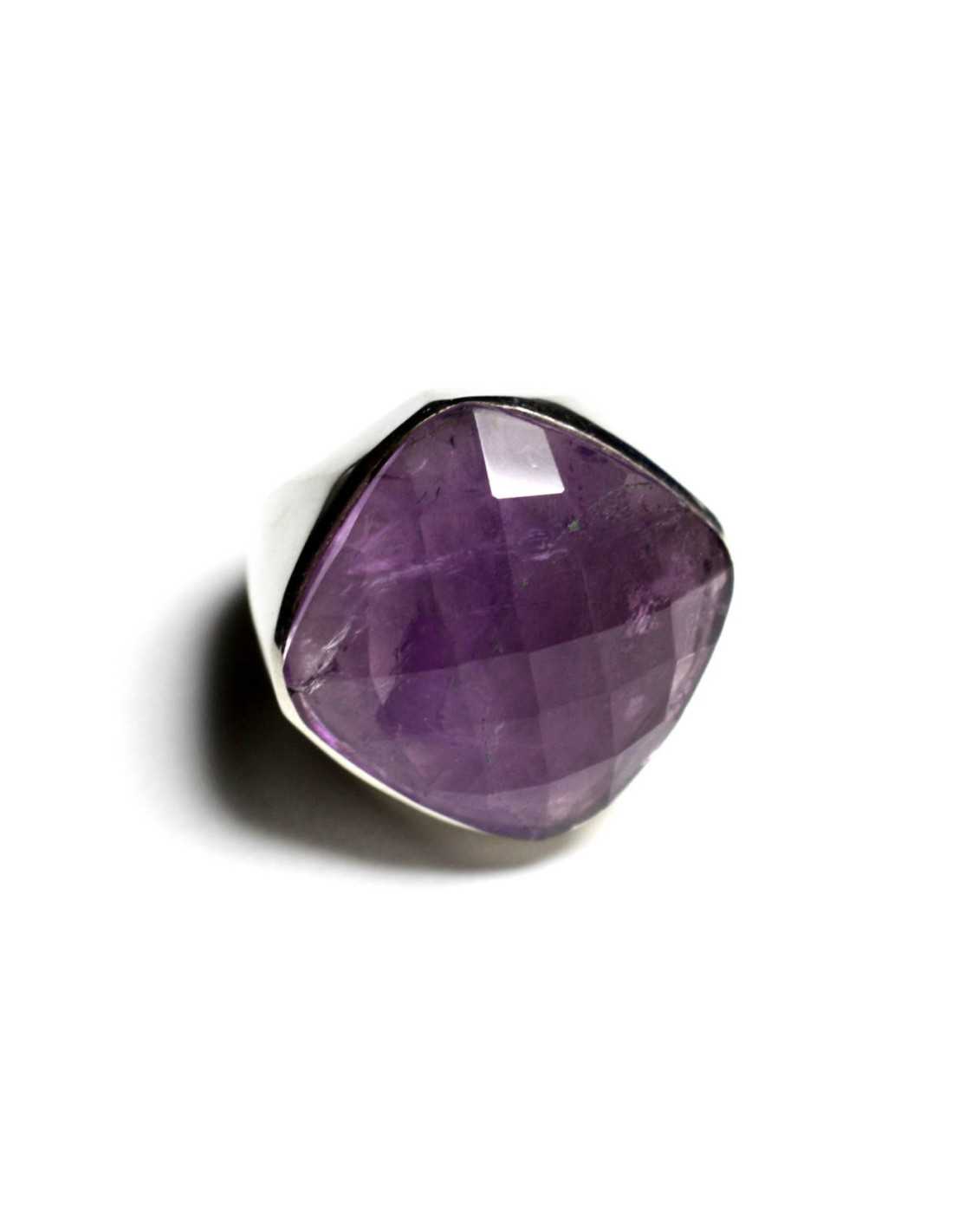 N223 - Anello in argento sterling 925 e pietra - Losange sfaccettato con ametista 23 mm