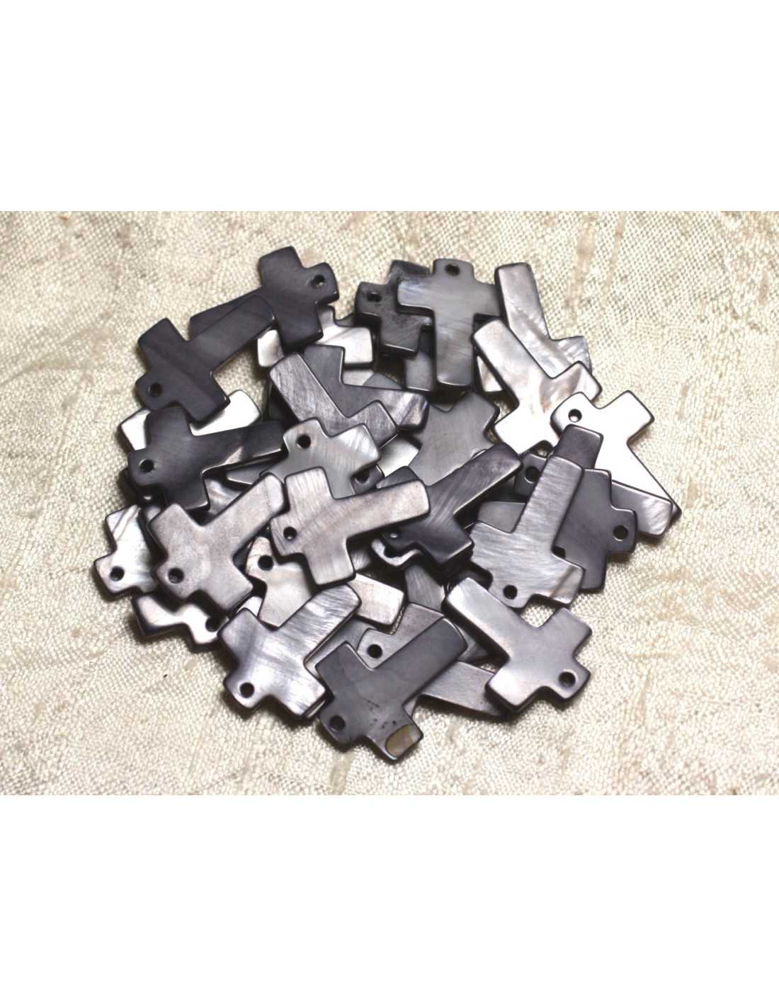 4pc - Pendenti con ciondoli di perle Croce in madreperla 22mm Grigio Nero 4558550002471