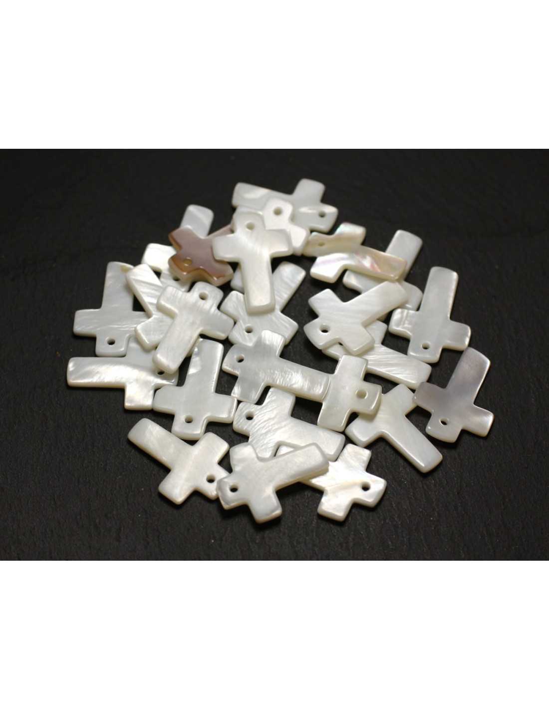 Homemade4pz - Pendenti in madreperla bianca con ciondoli perline con croce 22mm