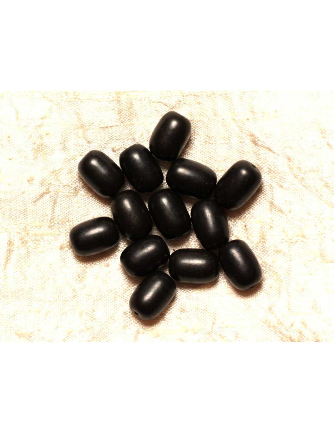 Filo 39 cm - Perline in pietra turchese Sintesi ricostituita Barili da 14 mm Pietra sintetica Colore Nero Forma Barili forati longitudinalmente Dimensioni Lunghezza 14 mm x Larghezza 9 mm circa Dimensione foratura 1 mm circa Venduto con filo di 39 cm Circa 26 perline per filo