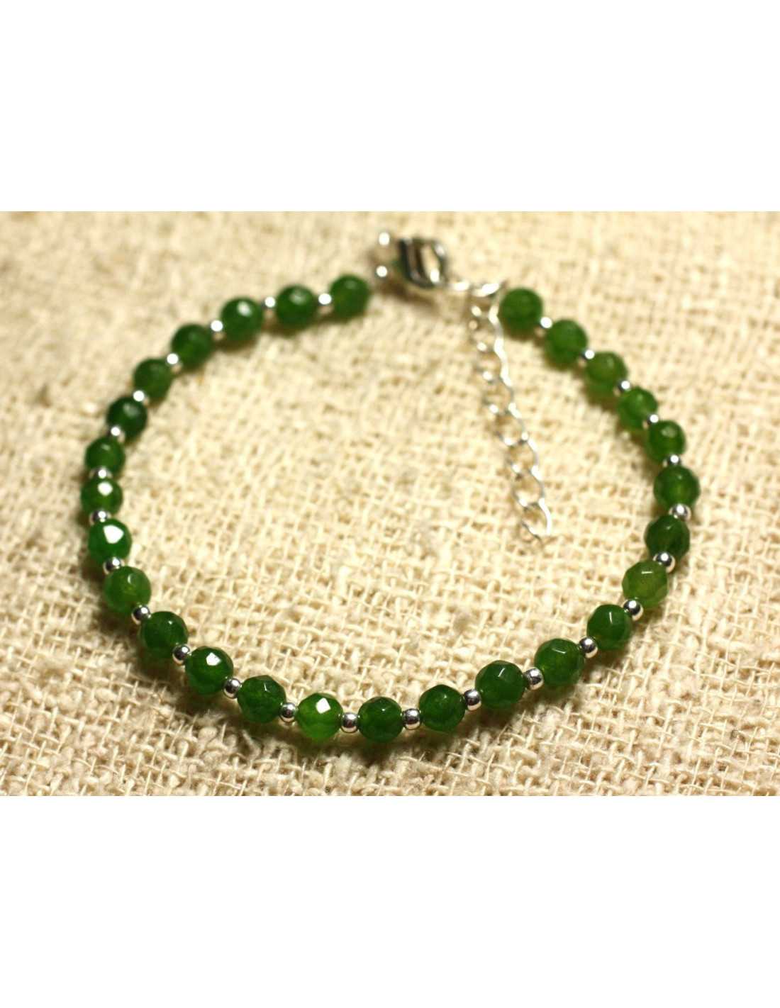 Bracciale in Argento 925 e Pietra - Giada Verde Sfaccettata 4mm