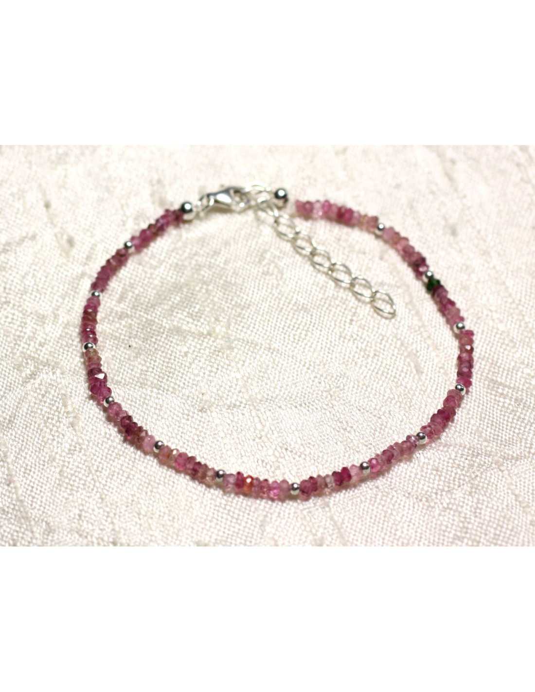 Bracciale in Argento 925 e Pietra - Rondelle sfaccettate in tormalina rosa 3x2mm