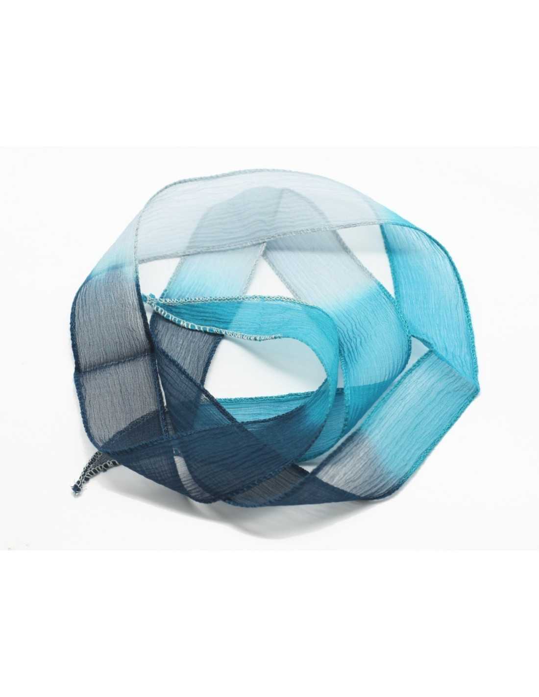 1pc - Collana con nastro di seta tinta a mano 85 x 2,5 cm Grigio Blu Turchese Marina (rif SOIE135)