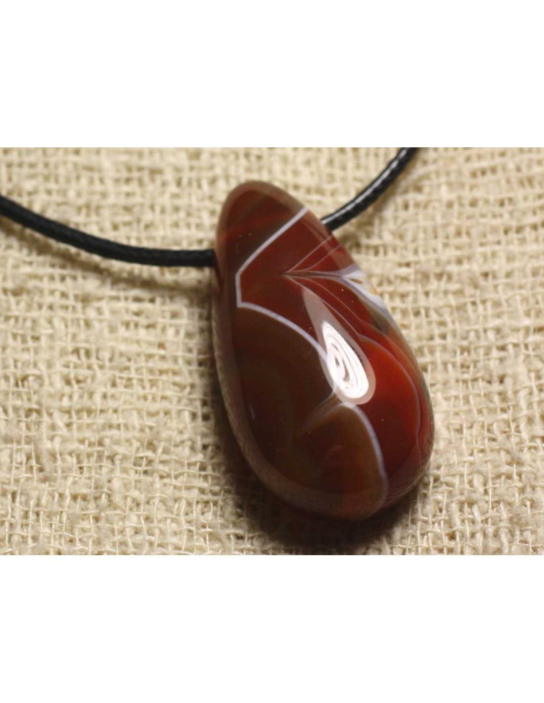 Collana con pendente in pietra - Goccia di agata arancione rossa 40x20mm